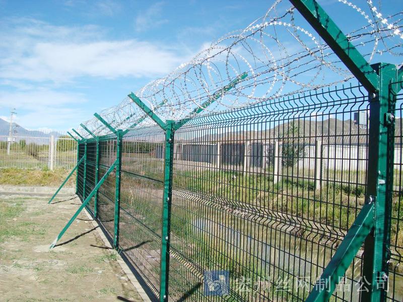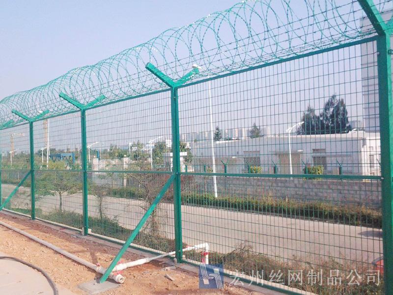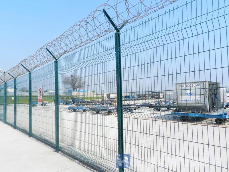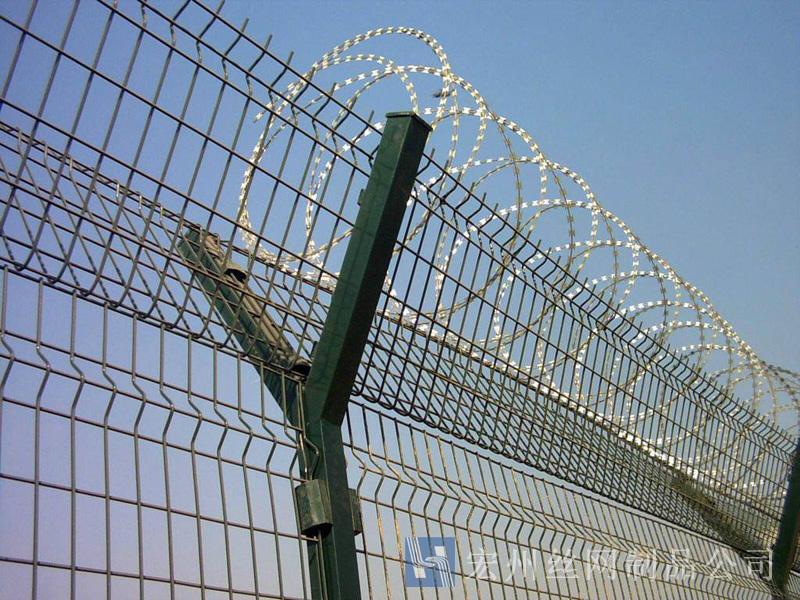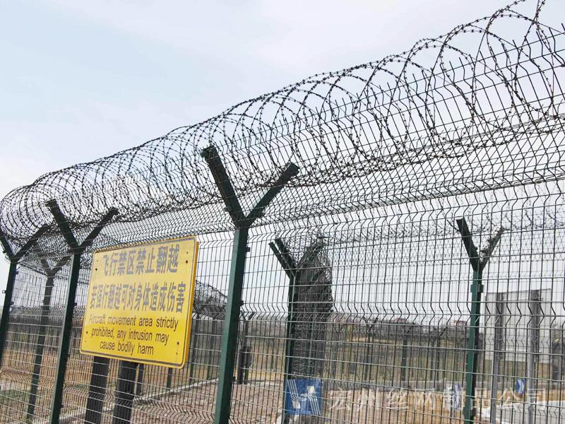 機(jī)場(chǎng)鐵絲圍欄網(wǎng)產(chǎn)品具有:美觀、大方、防腐性好、易保養(yǎng)、防攀爬能力強(qiáng)。近年來(lái),被廣泛應(yīng)用在機(jī)場(chǎng),軍事基地等高安全場(chǎng)所。注:假如在機(jī)場(chǎng)護(hù)欄網(wǎng)頂部加裝刀片刺絲、刀片刺繩后又很好的增強(qiáng)了安全防護(hù)機(jī)能。