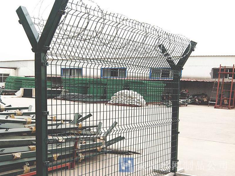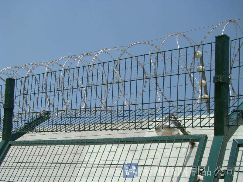 監(jiān)獄防護(hù)網(wǎng)又稱監(jiān)獄隔離網(wǎng)或監(jiān)獄隔離柵,山東監(jiān)獄隔離網(wǎng)產(chǎn)品由護(hù)欄網(wǎng)直接生產(chǎn)廠家--宏州護(hù)欄網(wǎng)廠生產(chǎn)提供,產(chǎn)品主要是采用高強(qiáng)度的刀片刺網(wǎng)與普通防護(hù)網(wǎng)的結(jié)合,由V型支架立拄,加強(qiáng)型焊接片網(wǎng),安全防盜連接件和刀片刺網(wǎng)組成.刀片刺網(wǎng)是一種新型防護(hù)網(wǎng),由銳利尖角鍍鋅鋼板或不銹鋼薄板做刀片,鋼絲做芯線組合而成的防護(hù)器材.監(jiān)獄刺網(wǎng)護(hù)欄可平地安裝,也可在圍墻上二次安裝,有效防止攀逃。