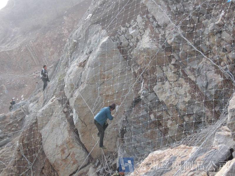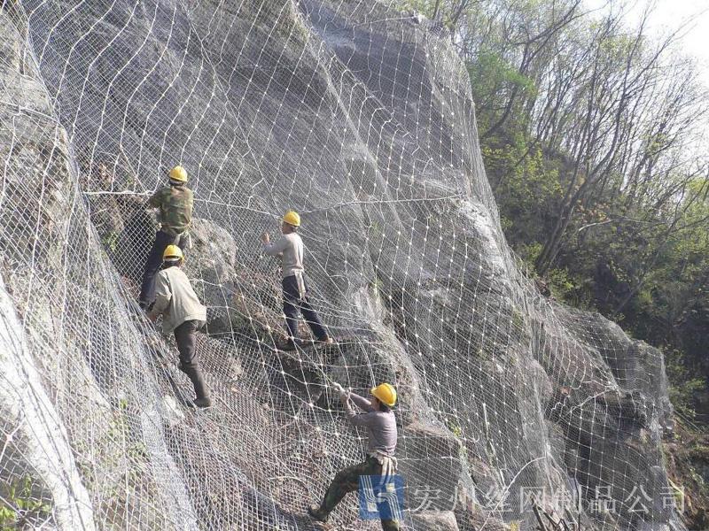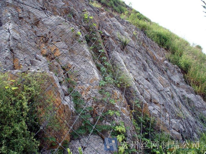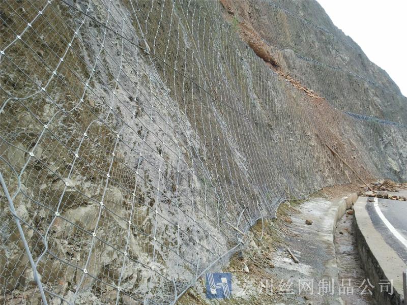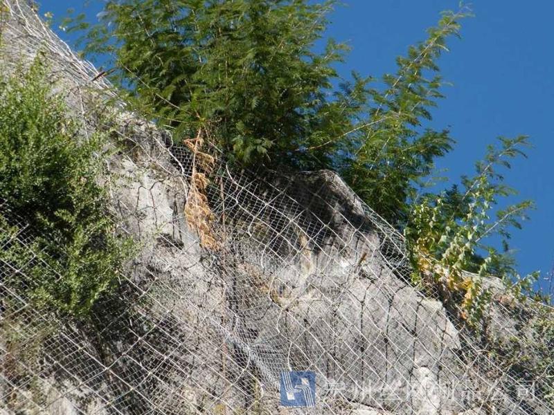 主動防護(hù)系統(tǒng)是以鋼絲繩網(wǎng)為主的各類柔性網(wǎng)覆蓋包裹在所需防護(hù)斜坡或巖石上,以限制坡面巖石土體的風(fēng)化剝落或破壞以及為巖崩塌(加固作用),或?qū)⒙涫刂朴谝欢ǚ秶鷥?nèi)運動(圍護(hù)作用)。是柔性防護(hù)網(wǎng)的一種。